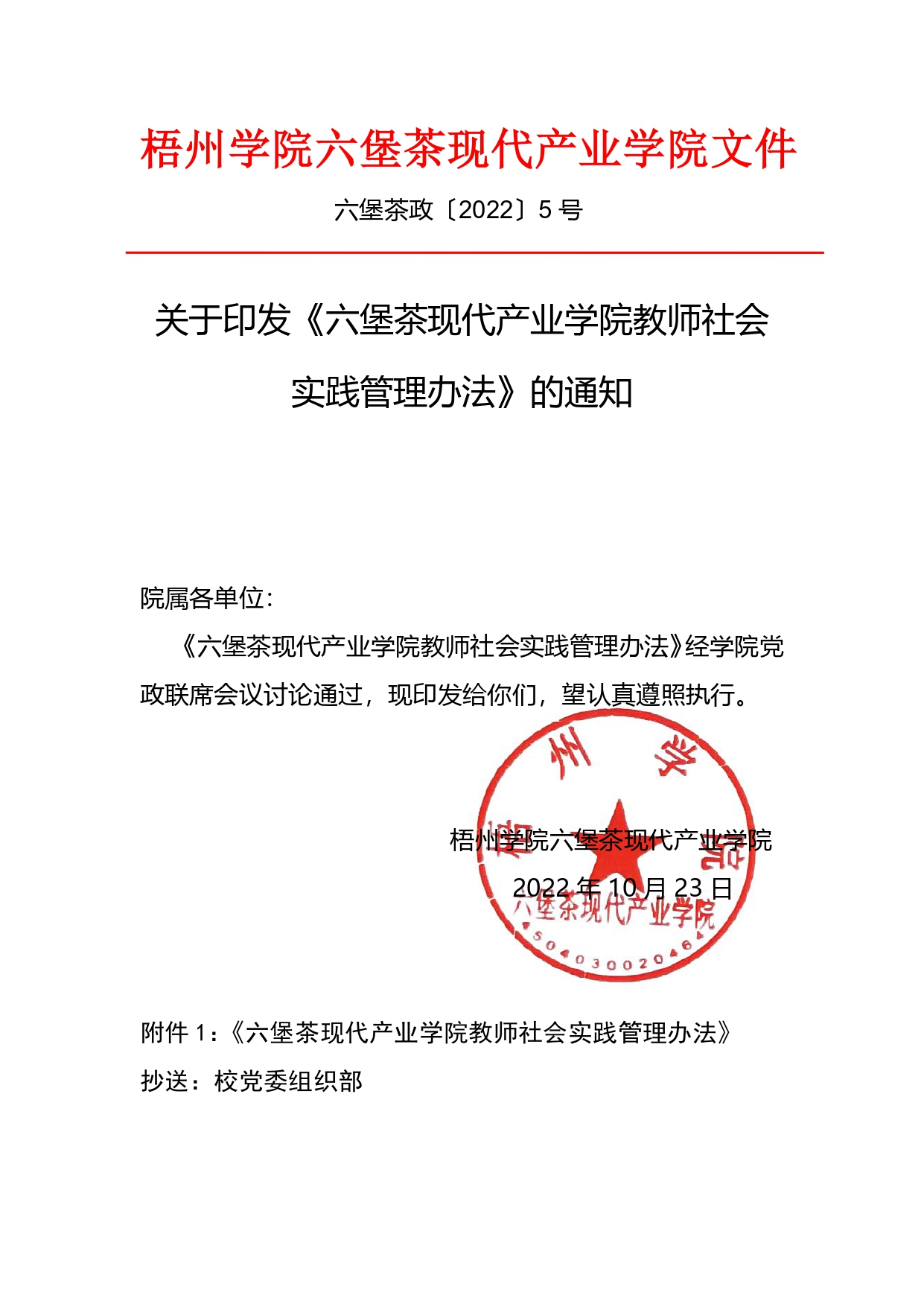 关于印发《六堡茶现代产业学院教师社会实践管理办法》的通知